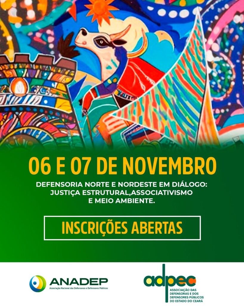 INSCRIÇÕES ABERTAS: Encontro das Defensoras e Defensores Públicos das Regiões Norte e Nordeste será realizado em Fortaleza, em novembro